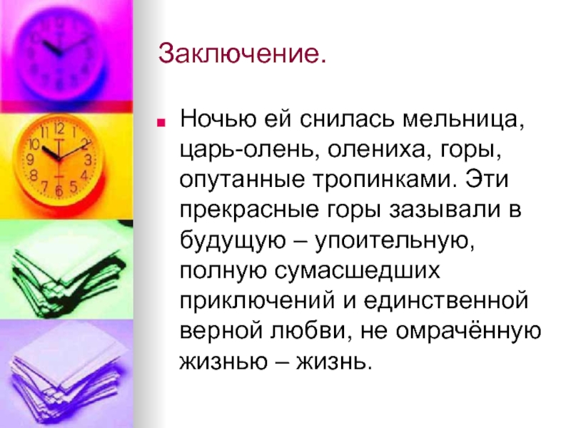 Ночью ей снилась мельница, царь-олень, олениха, горы, опутанные тропинками. Эти прекрасные