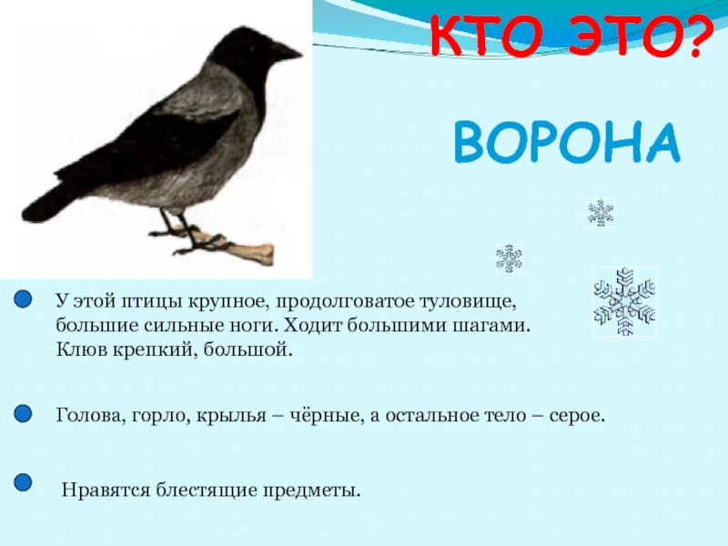 Голова, горло, крылья – чёрные, а остальное тело – серое.