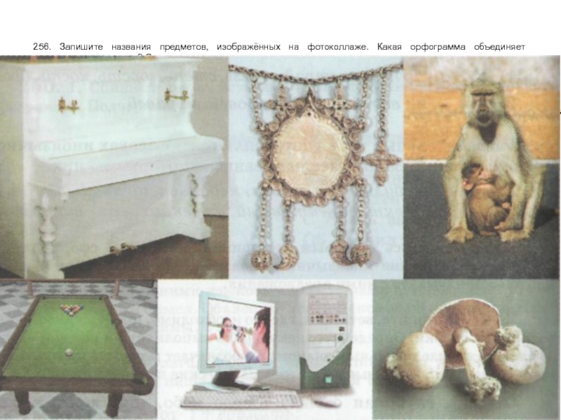 256. Запишите названия предметов, изображённых на фотоколлаже. Какая орфограмма объединяет записанные вами слова? Составьте с ними предложения.