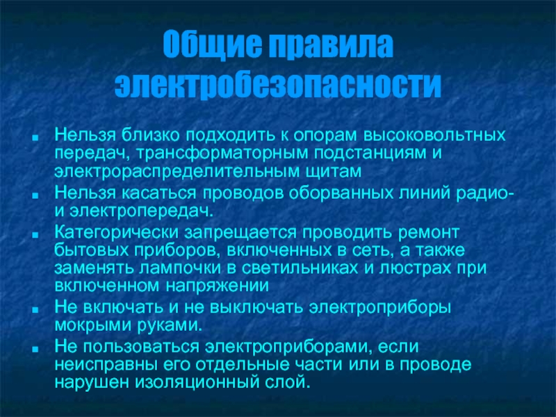 Категорически запрещается проводить ремонт бытовых приборов, включенных в сеть, а также заменять лампочки в светильниках и люстрах при включенном напряжении