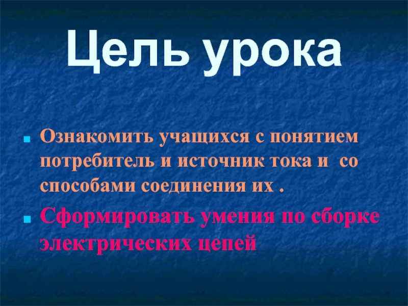 Ознакомить учащихся с понятием потребитель и источник тока и со