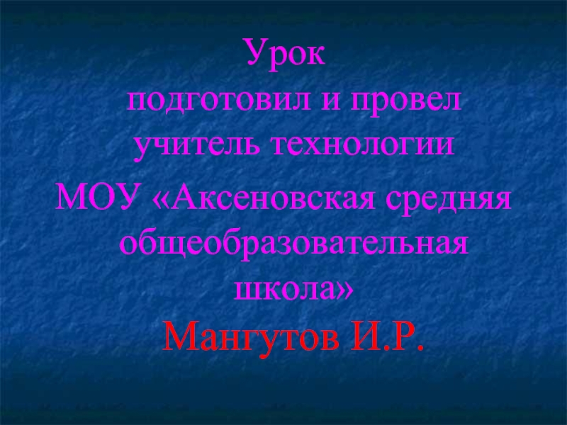 МОУ «Аксеновская средняя общеобразовательная школа» Мангутов