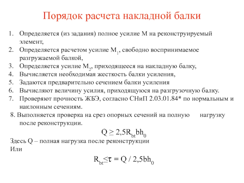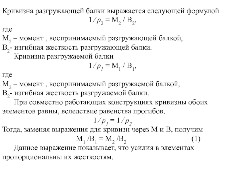 Основным условием, позволяющем решить эту задачу является обеспечение совместности деформаций для обеих конструкций за счет различных конструктивных мероприятий. В этом случае перераспределение усилий внутри комплексной конструкции между усиливаемым и разгружающим элементами происходит пропорционально их изгибным жесткостям