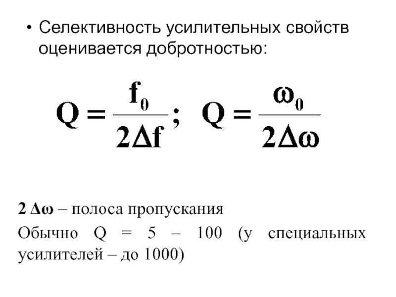 Если пренебречь Rвых транзистора и Rн, то kU ~ R0, а на резонансной частоте сопротивление контура велико и kU - максимален