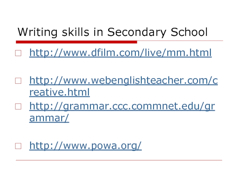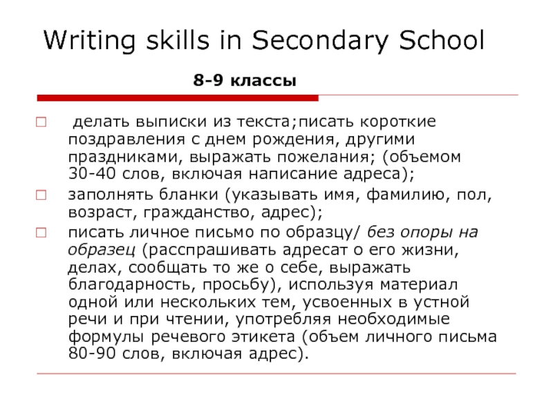 Слайд 8Writing skills in Secondary School