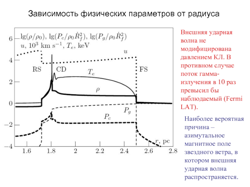 Наиболее вероятная причина – азимутальное магнитное поле звездного ветра, в котором внешняя ударная волна распространяется.