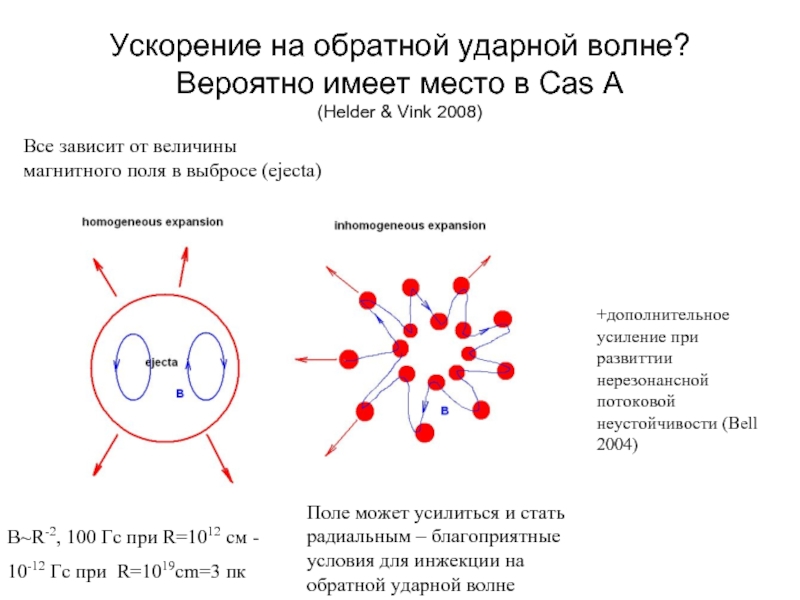 Поле может усилиться и стать радиальным – благоприятные условия для инжекции на обратной ударной волне