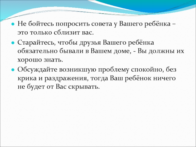 Слайд 15Не бойтесь попросить совета у Вашего ребёнка – это только сблизит