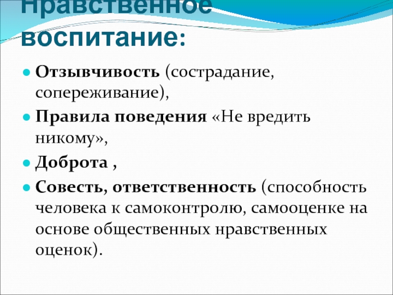 «Нравственное воспитание» - это постоянное воздействие на чувства и поведение детей