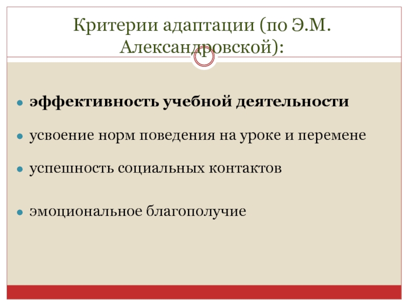 Слайд 3Критерии адаптации (по Э.М. Александровской):