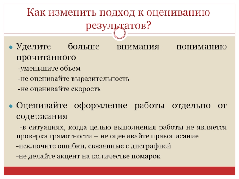 Слайд 22Как изменить подход к оцениванию результатов?