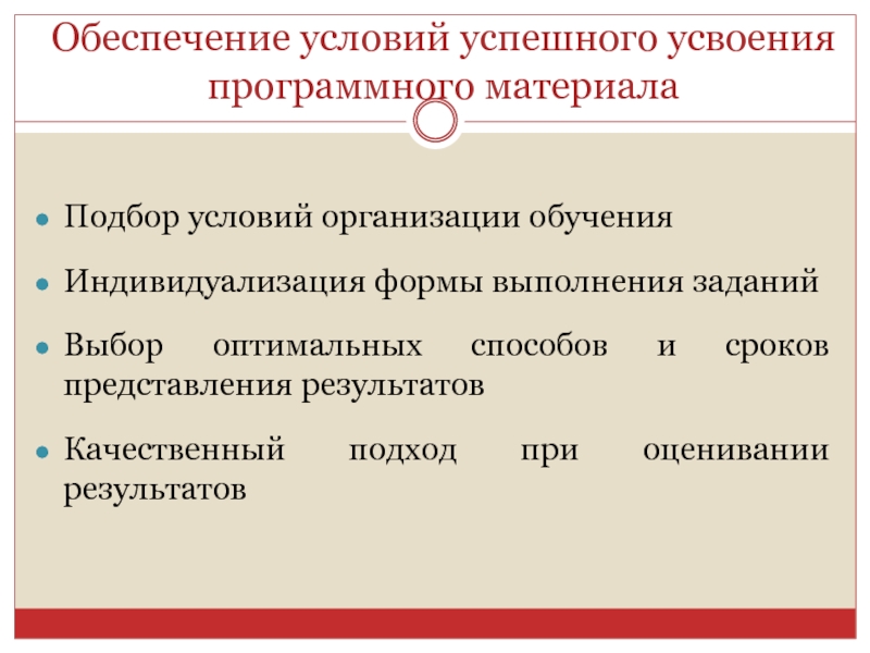 Слайд 4Обеспечение условий успешного усвоения программного материала