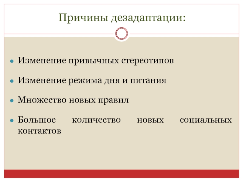 Причины дезадаптации: