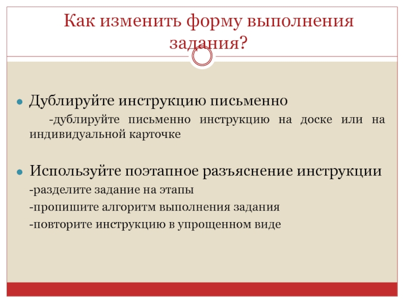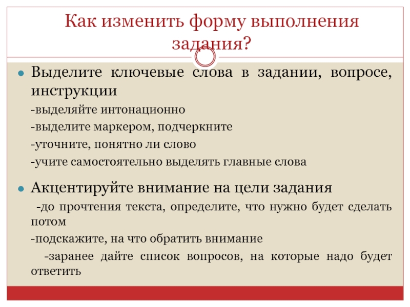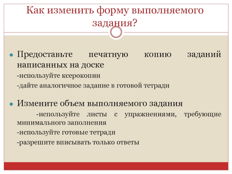 Слайд 17Как изменить форму выполняемого задания?