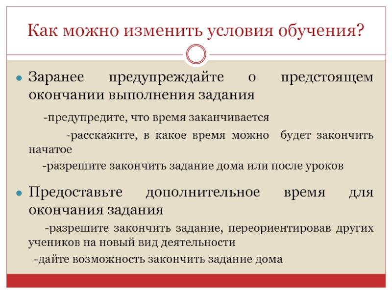 Слайд 13Как можно изменить условия обучения?