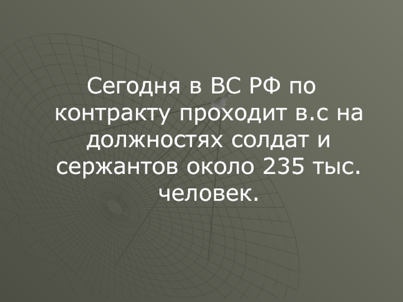 Слайд 4Сегодня в ВС РФ по контракту проходит в.с на должностях солдат