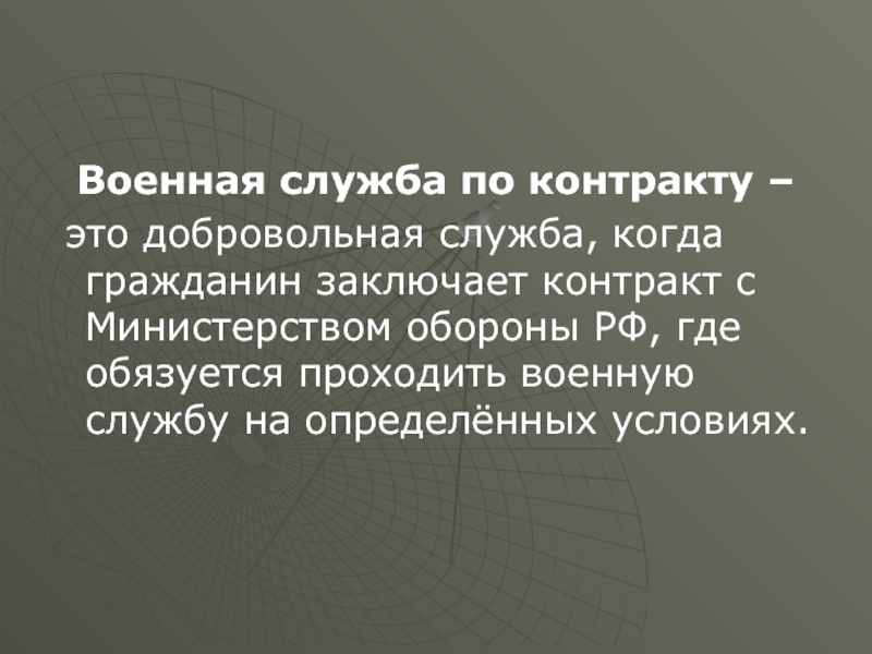 контракт с Министерством обороны РФ, где обязуется проходить военную службу на определённых условиях.