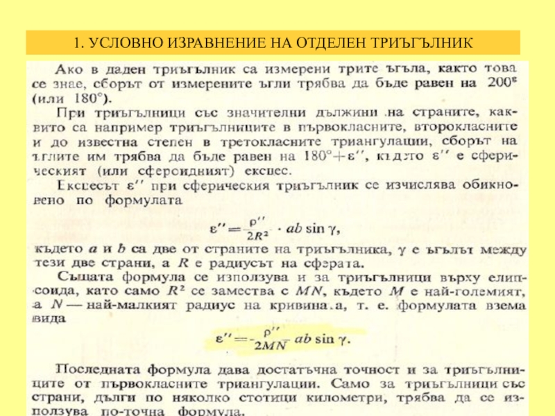 Слайд 31. УСЛОВНО ИЗРАВНЕНИЕ НА ОТДЕЛЕН ТРИЪГЪЛНИК