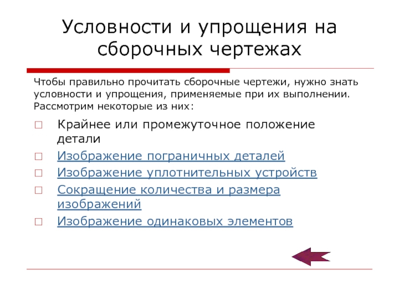 Чтобы правильно прочитать сборочные чертежи, нужно знать условности и упрощения, применяемые при их выполнении. Рассмотрим некоторые из них: