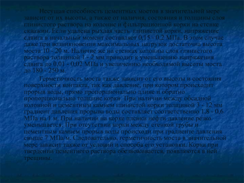 Слайд 2 Несущая способность цементных мостов в значительной мере зависит от их высоты,