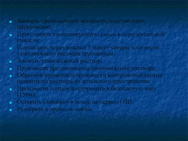 Приготовить тампонирующую смесь в осреднительной емкости;