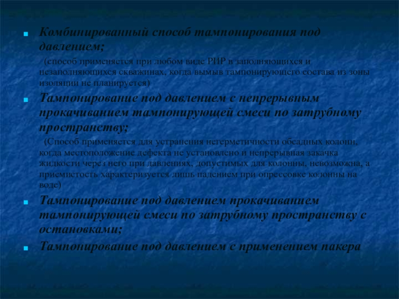 Слайд 10Комбинированный способ тампонирования под давлением;