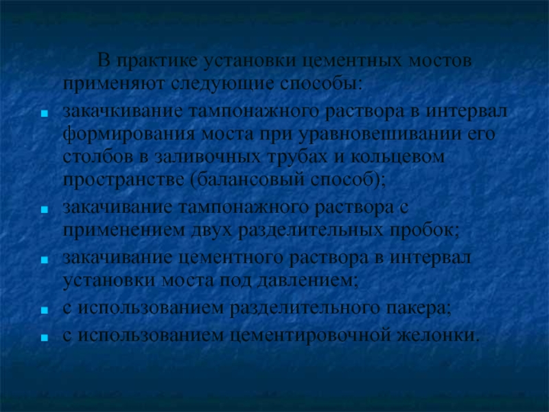 Слайд 3 В практике установки цементных мостов применяют следующие способы: