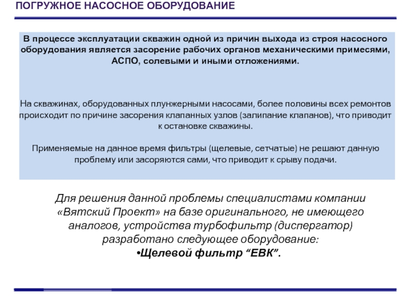 Для решения данной проблемы специалистами компании «Вятский Проект» на базе оригинального, не имеющего аналогов, устройства турбофильтр (диспергатор) разработано следующее оборудование:
