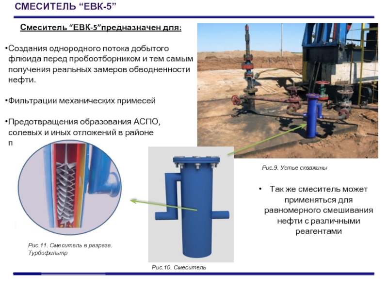 Так же смеситель может применяться для равномерного смешивания нефти с различными реагентами