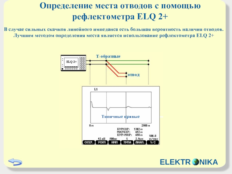 Место определения отводов можно определить с помощью рефлектометра ELQ 2+