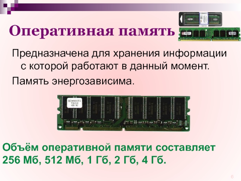 Объём оперативной памяти составляет 256 Mб, 512 Mб, 1 Гб, 2 Гб, 4 Гб.