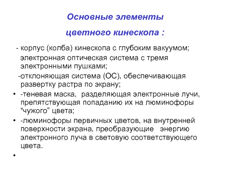 Несоблюдение точности расположения точек люминофора искажает цветовоспроизведение. Перед экраном -цветоделительная маска -11 , для попадания ЭЛП только на люминофоры «своих» цветов.