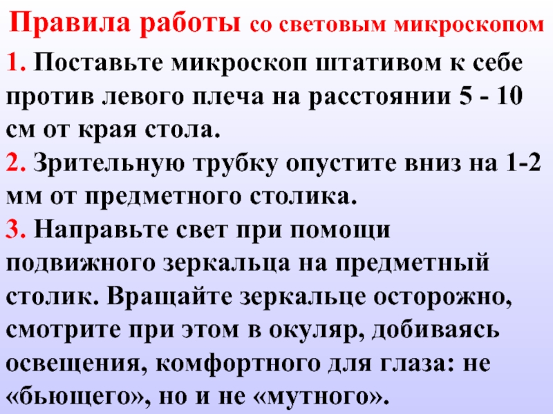 Слайд 15Правила работы со световым микроскопом