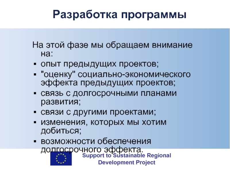 социально-экономического эффекта предыдущих проектов;