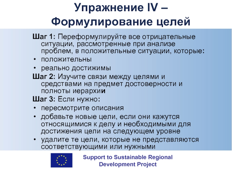 ПРОВЕРКА проводится время от времени для того, чтобы увидеть, ведёт ли каждый из уровней целей к следующему, и не возникла ли необходимость внесения каких-либо изменений в планы проекта, например, через каждые шесть месяцев.