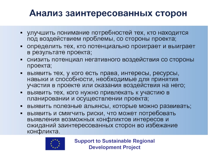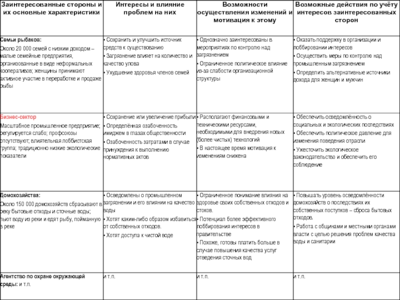 Чётко определённые заинтересованные стороны – основная целевая группа и бенефициары;