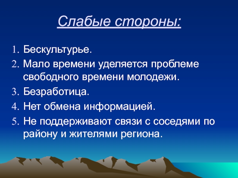 Много неиспользованных помещений, которые можно использовать для проведения свободного времени, жилья.