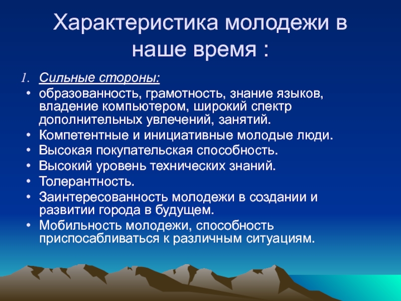 Мобильность молодежи, способность приспосабливаться к различным ситуациям.