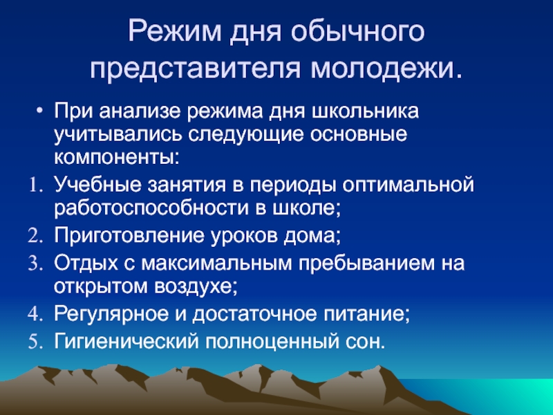 режима для человека, значимость двигательной активности, питания и сна в режиме здорового человека.» потому, что она очень актуальна в наше время.