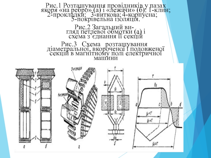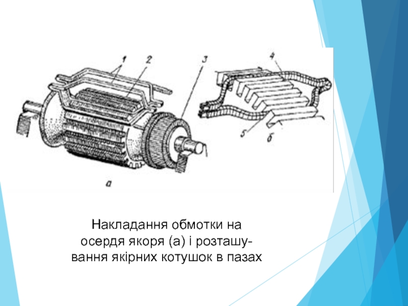 Слайд 6Накладання обмотки на осердя якоря (а) і розташу-