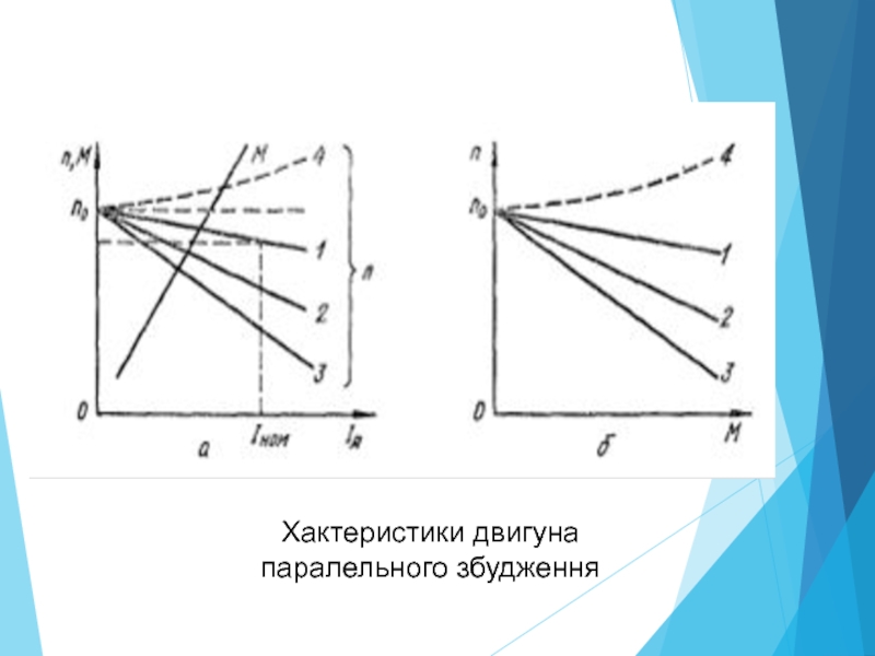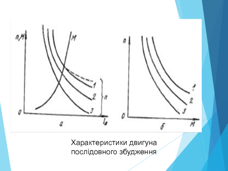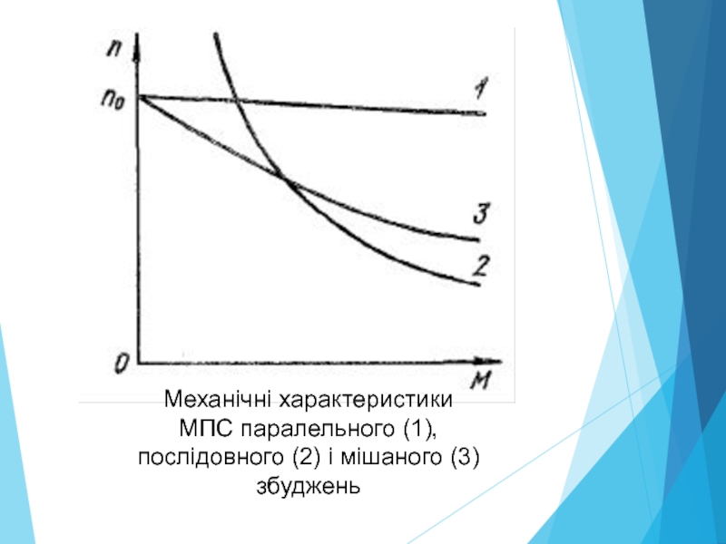 Слайд 28Механічні характеристики МПС паралельного (1), послідовного (2) і мішаного (3) збуджень