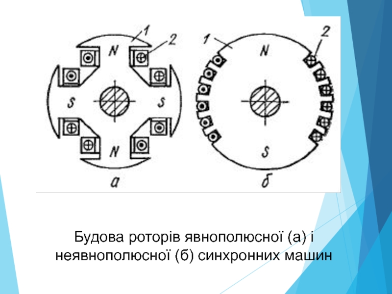 Слайд 54Поперечна (а), поздовжньо-розмагнічувальна (б) і поздовжньо-намагнічувальна (в) реакції якоря реакції якоря