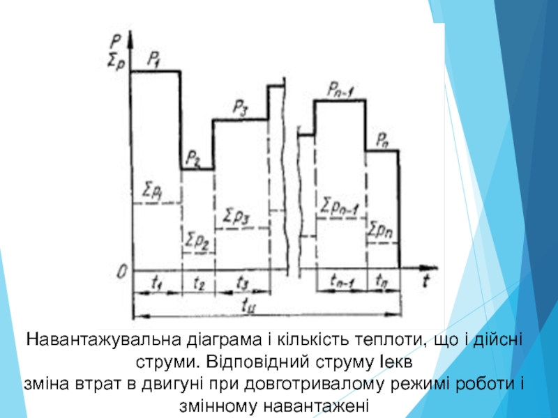 Слайд 58Навантажувальна діаграма і кількість теплоти, що і дійсні струми. Відповідний струму