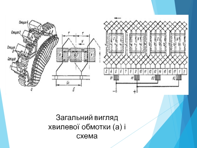 Слайд 11Загальний вигляд хвилевої обмотки (а) і схема