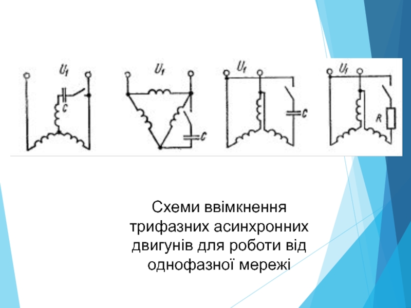 Слайд 49Схеми ввімкнення трифазних асинхронних