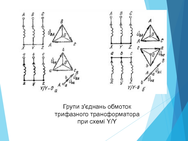 Слайд 37Групи з'єднань обмоток трифазного трансформатора