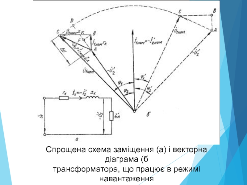 Слайд 33Спрощена схема заміщення (а) і векторна діаграма (б