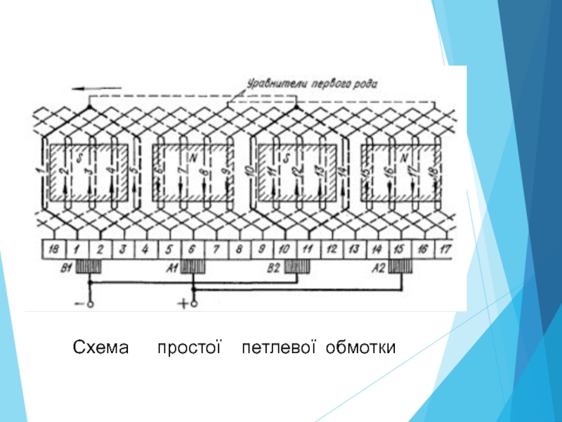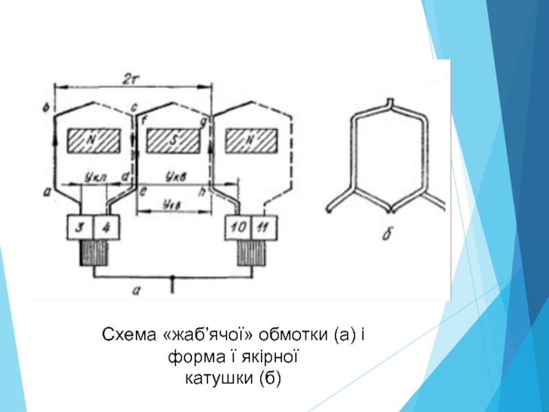 Слайд 13Схема «жаб’ячої» обмотки (а) і форма ї якірної