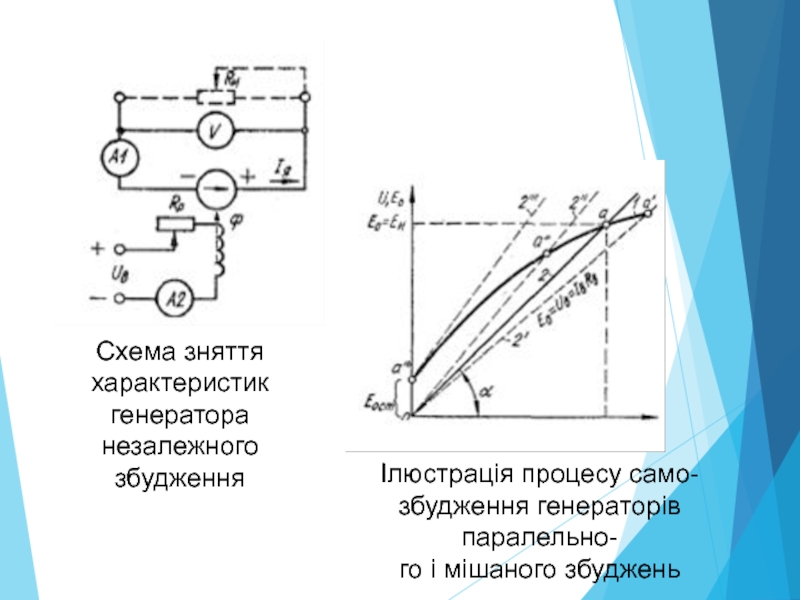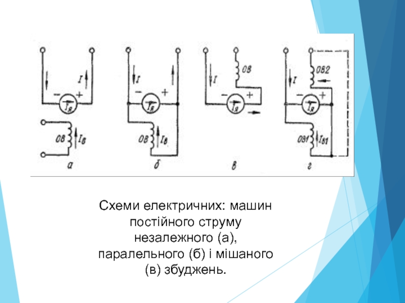 Слайд 19Схеми електричних: машин постійного струму незалежного (а), паралельного (б) і мішаного