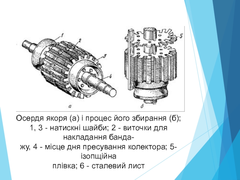 Слайд 5Осердя якоря (а) і процес його збирання (б);